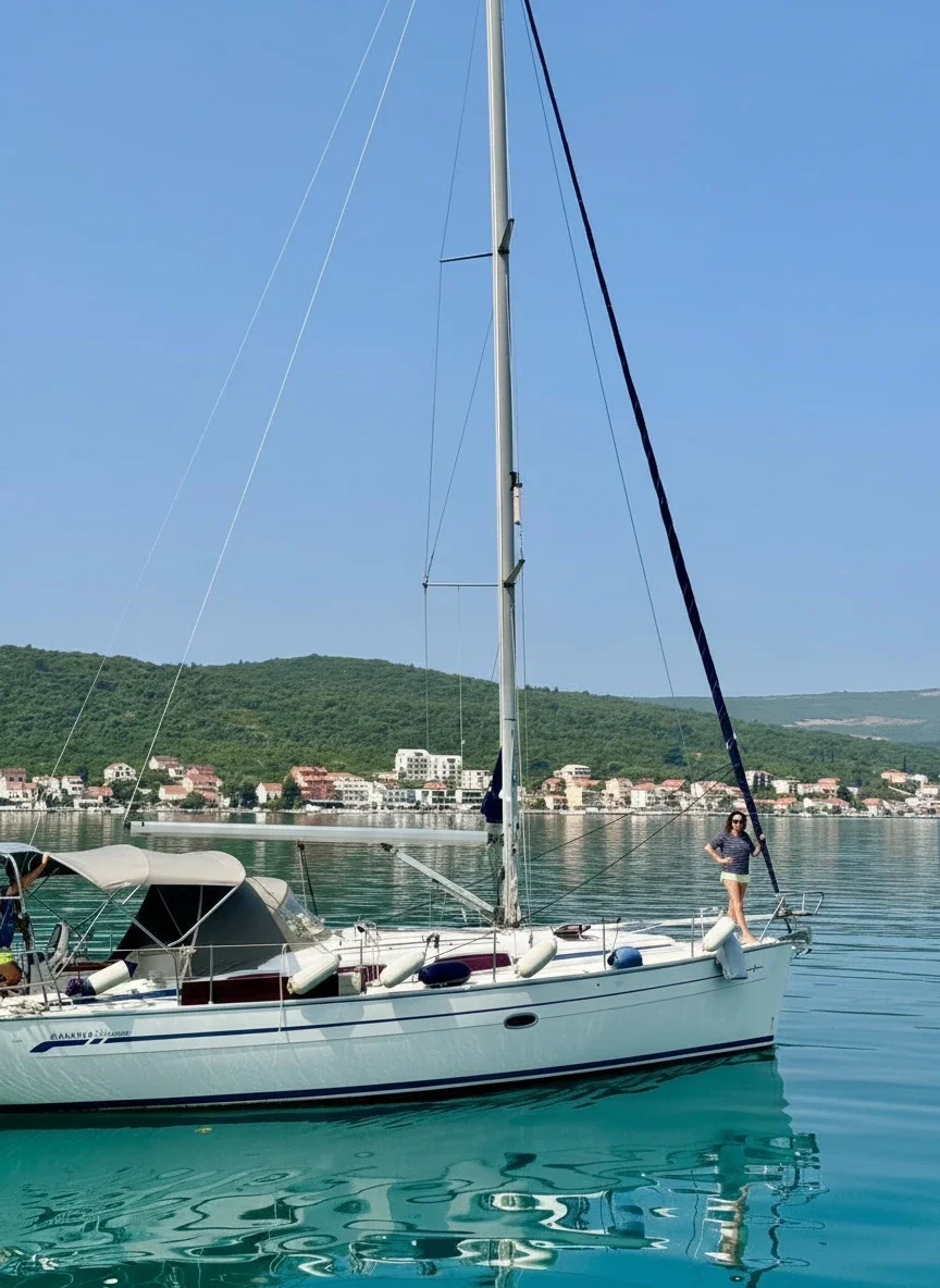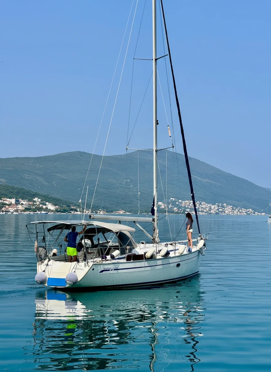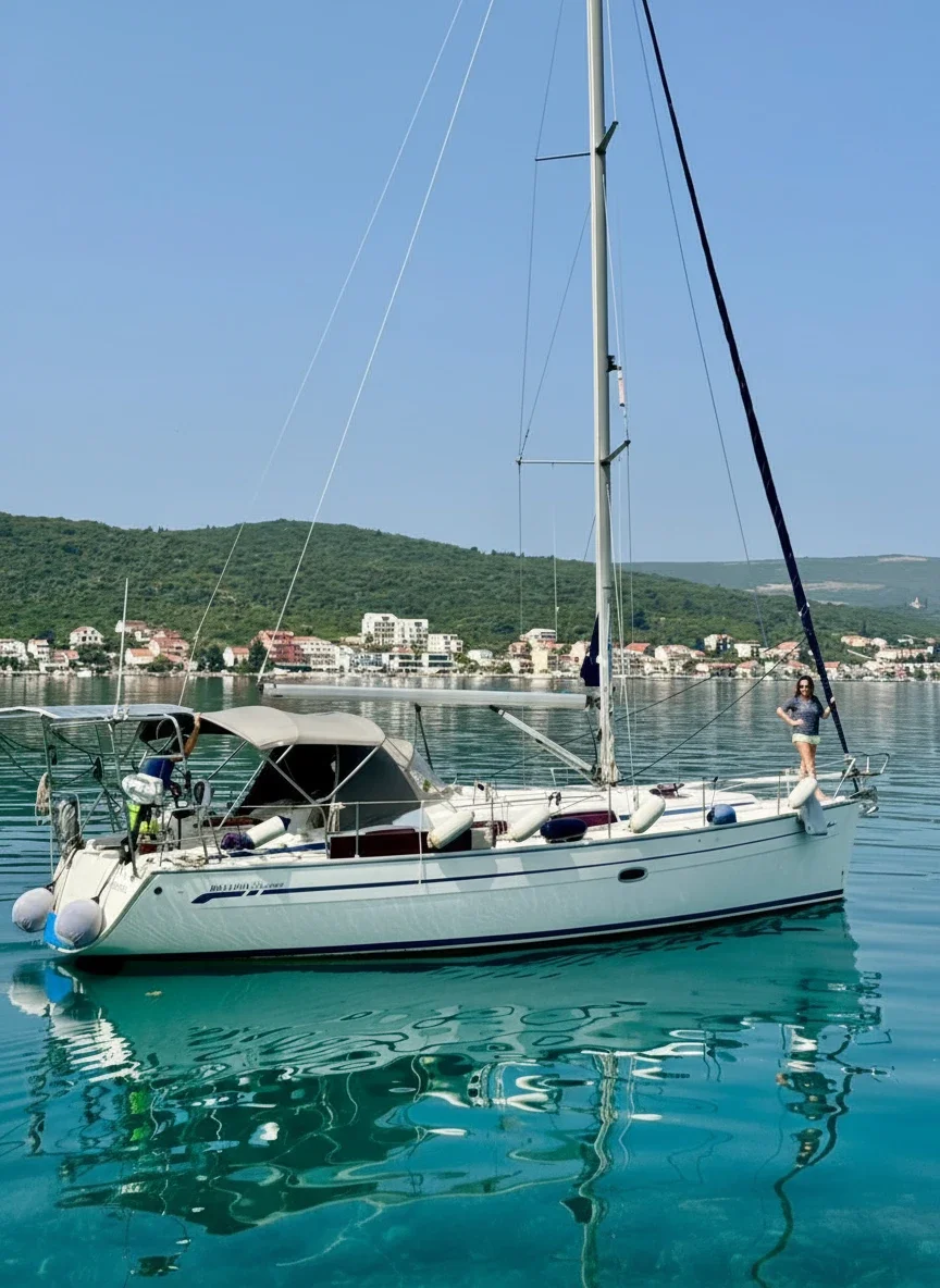 The Bavaria 38 Cruiser | Alissun is a fully equipped 3-cabin sailing yacht available for private charter in Montenegro and the Adriatic. Designed for comfort, relaxation, and active sea experiences, she is ideal for day trips, weekend escapes, and week-long yacht holidays. With a spacious cockpit, twin helm layout, and fold-down swim platform with bathing ladder, Alissun offers easy access to the sea and safe movement onboard. The cockpit is equipped with a hot and cold freshwater shower, outdoor dining area, and BBQ grill — perfect for relaxed lunches at anchor in secluded Adriatic bays. For water activities, the yacht includes a Stand Up Paddleboard (SUP), a large inflatable swim ring, and a floating water mattress, making her an excellent choice for families and groups seeking an active yacht charter in Montenegro. Inside, guests enjoy a bright 3-cabin layout accommodating up to 6 people, a fully equipped galley with refrigerator, ice maker, coffee machine, and premium tableware with real glassware. A high-quality onboard sound system creates the right atmosphere for sunset cruising, while the electric toilet and comfortable bathroom facilities ensure convenience during longer stays. Bavaria 38 Cruiser Alissun combines German build quality with practical luxury, offering a well-balanced sailing yacht charter experience in the Adriatic region.