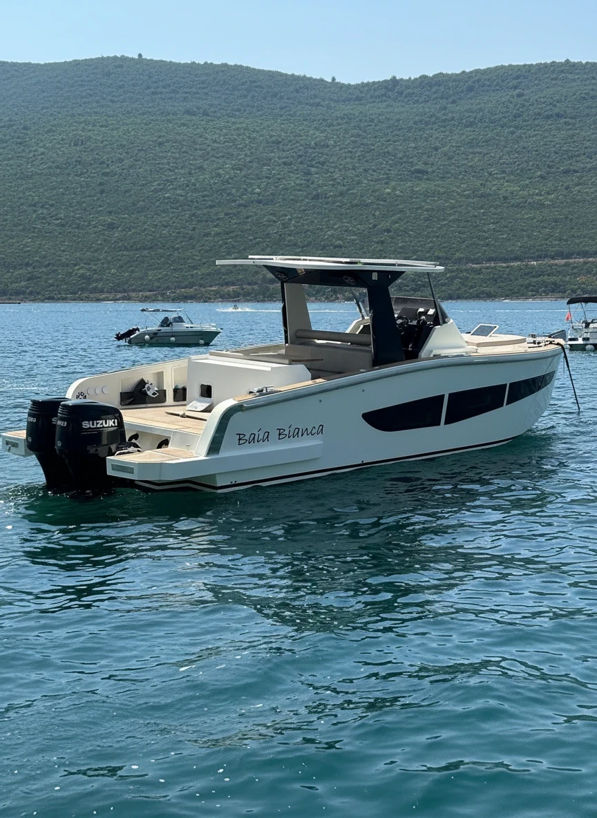 The Fiart 35 is a stylish Italian motor yacht that combines sporty performance with elegant design, making it an excellent choice for comfortable cruising along the beautiful Bay of Kotor. Designed for relaxation and enjoyment at sea, the yacht features spacious outdoor areas for sunbathing and socializing, as well as a comfortable cockpit lounge perfect for enjoying the Adriatic views. Its smooth handling and reliable performance make it ideal for exploring hidden beaches, coastal towns, and scenic swimming spots. Below deck, the Fiart 35 offers a cozy interior with comfortable cabins, a compact galley, and a bathroom with shower, providing everything needed for relaxing day trips or short cruises. With its combination of Italian style, practicality, and performance, the Fiart 35 is a great option for couples, families, or small groups looking to enjoy a memorable yacht experience in Montenegro.