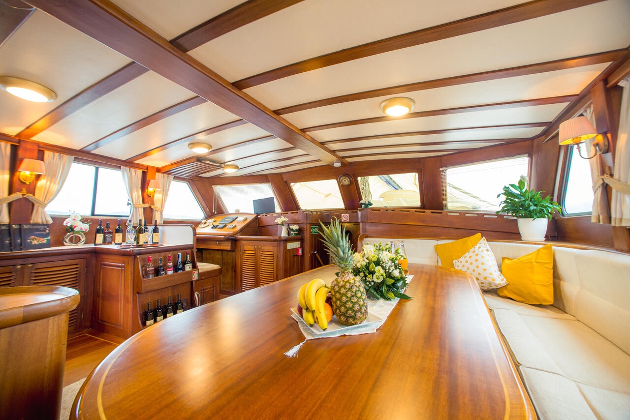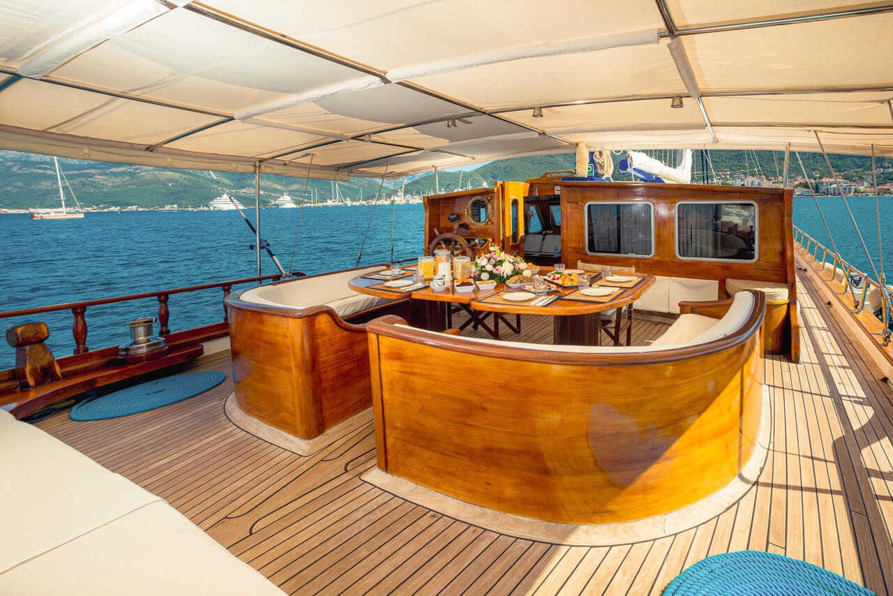 The gulet Kaptan Sevket is a classic wooden yacht that combines traditional charm with modern comfort, offering a unique charter experience in Montenegro and the Adriatic. With her elegant lines and warm atmosphere, she is ideal for relaxed cruising, family holidays, and authentic sailing journeys. The spacious deck is designed for both relaxation and socializing. Guests can enjoy sunbathing on comfortable loungers, dine outdoors in the shaded cockpit area, or simply unwind while taking in panoramic coastal views. The wide layout provides plenty of space for groups to move comfortably and enjoy the day at sea. Inside, the gulet features stylish cabins finished in natural wood, creating a warm and inviting ambiance. The yacht offers 6 cabins and 12 berths, making her ideal for groups and extended stays on board. The salon provides a cozy indoor space for relaxing, dining, or escaping the midday sun. Kaptan Sevket is equipped with everything needed for a smooth and enjoyable cruise, including a professional crew that takes care of navigation, service, and guest experience. This allows you to fully relax and enjoy your time on board. Perfect for multi-day charters, family vacations, or private group trips, the gulet Kaptan Sevket offers a slower, more atmospheric way to explore the Adriatic — combining comfort, tradition, and the beauty of life at sea.