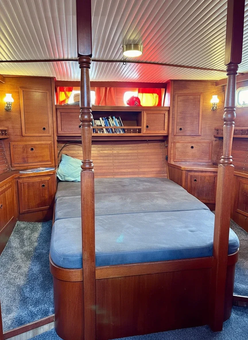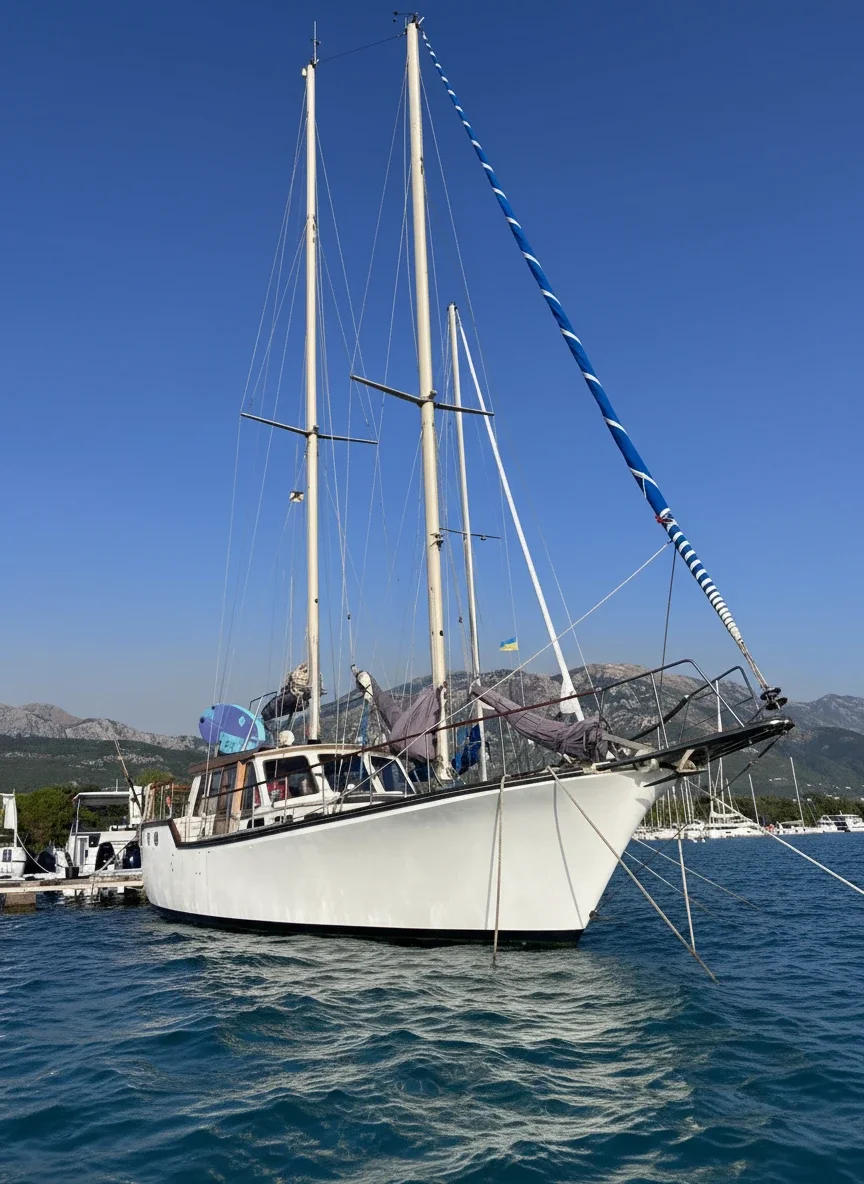 The Nauticat 44 is a premium bluewater pilothouse sailing yacht combining Scandinavian craftsmanship with offshore capability. Built in Finland, she is designed for safe, comfortable cruising in all weather conditions — ideal for private charters in the Adriatic. With a length of 13.4 meters and a spacious beam, the yacht offers excellent stability and smooth performance under sail or engine. The protected center cockpit and solid teak decks ensure security at sea, while wide side decks provide easy movement onboard. The signature raised pilothouse salon delivers panoramic visibility and a bright, warm interior finished in classic wood. The yacht typically features 2–3 cabins, accommodating up to 6 guests, a fully equipped galley, and comfortable bathrooms with showers — making her suitable for weekend escapes or extended sailing holidays. Perfect for couples, families, and experienced sailors seeking a classic ocean-capable yacht charter in Montenegro and the Adriatic region.
