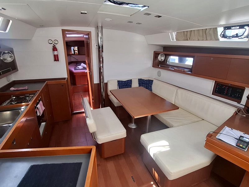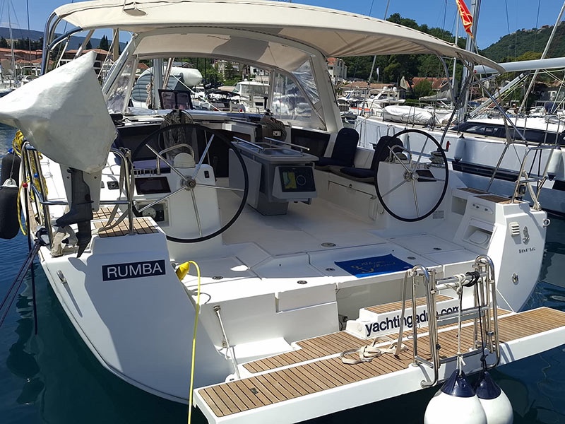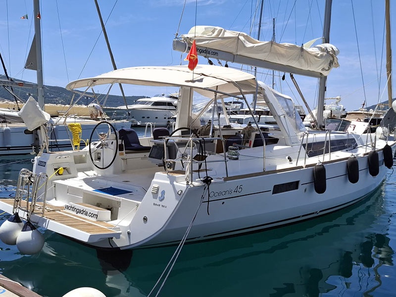The Oceanis 45 (3-cabin version) is a modern sailing yacht that perfectly combines performance, comfort, and elegant French design. Built by Beneteau, she is ideal for private charters in Montenegro and across the Adriatic. With a length of 13.85 meters, the Oceanis 45 offers excellent stability and smooth sailing performance, making her suitable for both experienced sailors and guests who prefer a relaxed, skipper-led experience. The yacht accommodates up to 6 guests in 3 spacious double cabins, making it a great choice for families, couples, or small groups. The bright and contemporary interior features a large saloon with panoramic windows, a fully equipped galley, and comfortable dining and lounge areas. Multiple bathrooms with showers ensure convenience during longer stays onboard. On deck, the Oceanis 45 is designed for outdoor living. The wide cockpit with twin helm wheels, folding table, and bimini top provides both comfort and functionality. The large swim platform with easy water access makes swimming and anchoring in secluded bays especially enjoyable. Whether you are planning a day charter, a weekend escape, or a full sailing holiday, the Oceanis 45 delivers a premium yacht charter experience in the Adriatic