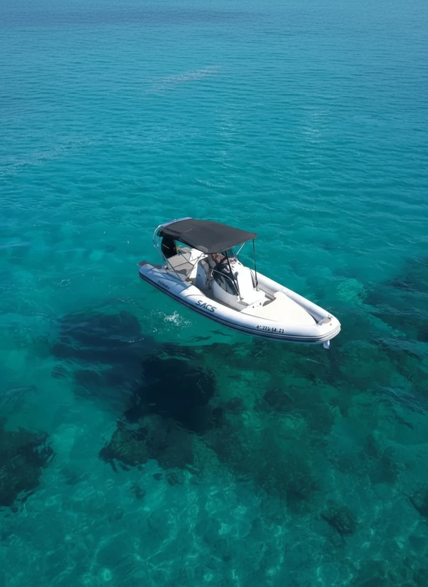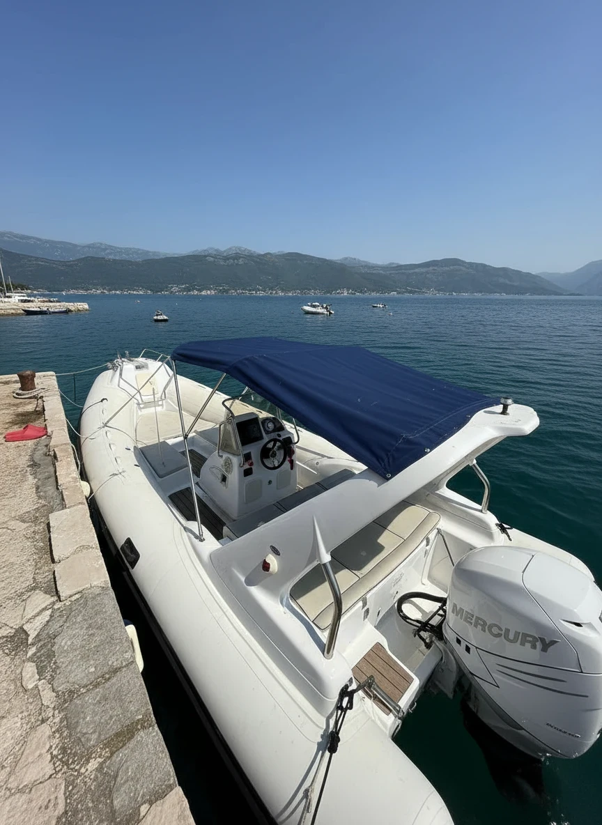 The Sacs S780 is an 8-meter RIB that combines sporty performance, stability, and comfort, making it a great choice for exploring the stunning waters of the Bay of Kotor. Its solid construction and well-designed deck layout provide plenty of space for relaxing, sunbathing, and enjoying time on the sea. The boat offers comfortable seating areas and an open deck that allows easy movement on board, as well as convenient access to the water for swimming stops in beautiful hidden bays and along the coast. The Sacs S780 is available for rent without a captain, making it ideal for experienced boaters who want the freedom to explore the Adriatic at their own pace.