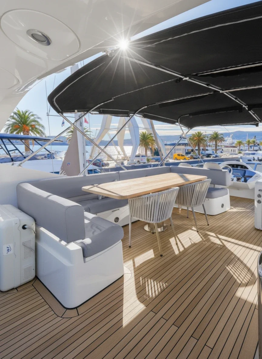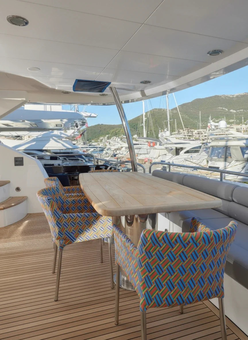The Sunseeker 80 “Elly” is a stunning representative of the renowned Sunseeker Yacht 80 series, combining high performance, exceptional comfort, and refined British style. Designed for luxury charters in Montenegro and the Adriatic, she offers the perfect balance of power, elegance, and onboard sophistication. Featuring a modern and dynamic Sunseeker design, Elly boasts a spacious flybridge ideal for alfresco dining, sunbathing, and relaxing with panoramic sea views. The large hydraulic swim platform ensures easy and safe access to the sea, making swimming stops and water activities effortless. The luxurious interior is finished with premium materials and offers four guest cabins, accommodating families and groups in total comfort: • 1 Master cabin (double) • 1 VIP cabin (double) • 2 Twin cabins located on port and starboard sides Fast, agile, and exceptionally smooth underway, the yacht delivers powerful cruising performance with remarkable stability. Equipped with Trac Zero Speed stabilizers, Elly provides maximum comfort both while cruising and at anchor. Regular maintenance and superyacht-level standards ensure impeccable condition and complete peace of mind throughout your charter experience.